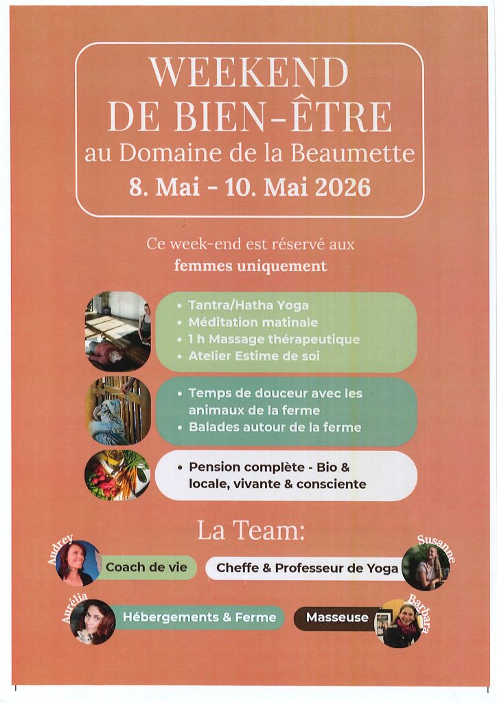 Mesdames, Réservez votre week-end du 7 au 10 mai pour un week-end bien-être au Domaine de la Beaumette. Au programme : 🔸 méditation…